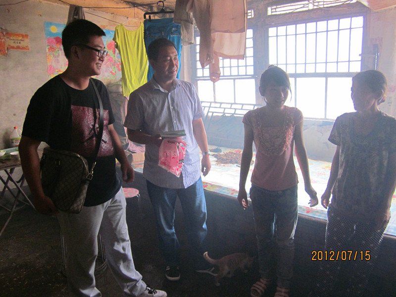 2012年7月15日星星之火爱心帮扶站部分成员和某部队官兵一同去义县地藏寺慰问那里的贫困儿童。 分别走访了三个孩子的家,并分别资助了500元,鼓励其努力学习。 王赢初中毕业即将要去义县一中读高中。中考成绩727,其中英语成绩117分