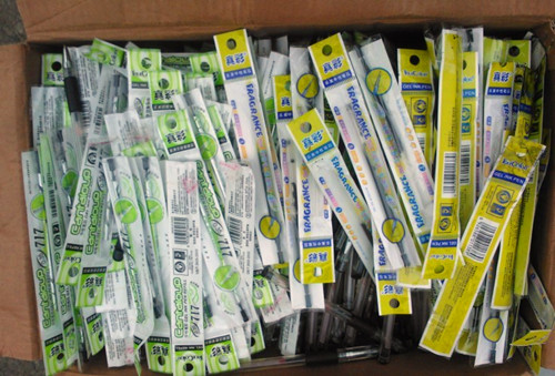 手表28块,相册2本,中性笔65支,笔芯大约400支。